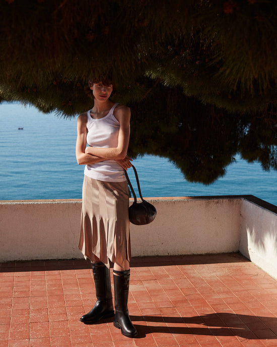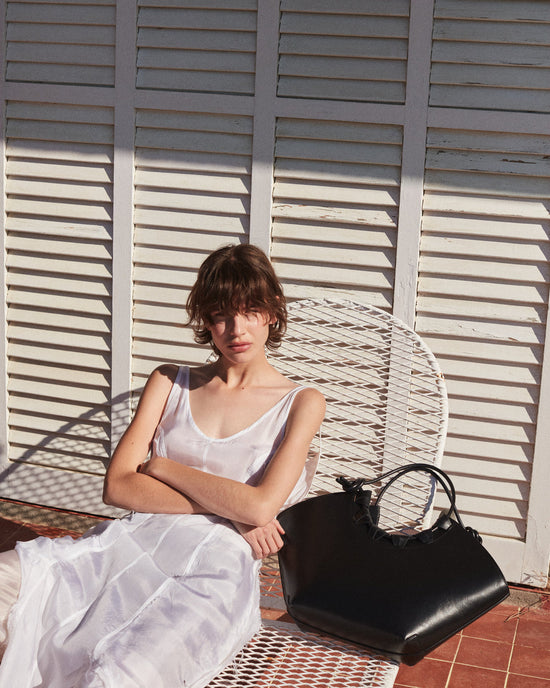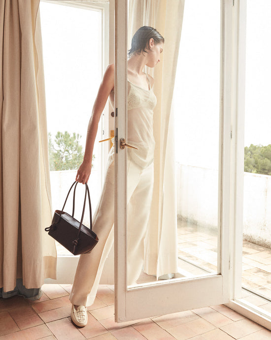 The texture blends softly with the sun, and the silhouette is somehow nostalgic, yet sophisticated.
